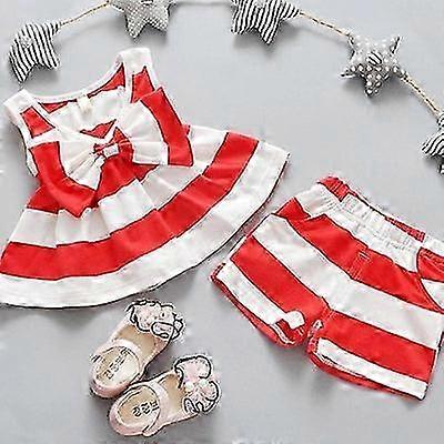 26-27 Girls Bow Tie Stripe Sleeveless Dresses With Short Pant Clothes