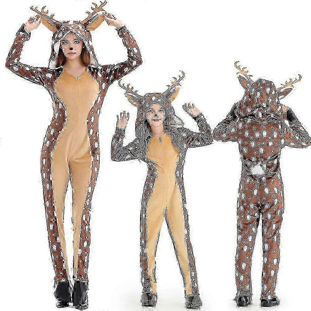 26-27 Adult Child Christmas Reindeer Costume Girls Women Hooded Cozy Fawn Deer Costume Onesie Fawn Deer Jumpsuit Costume For Kids