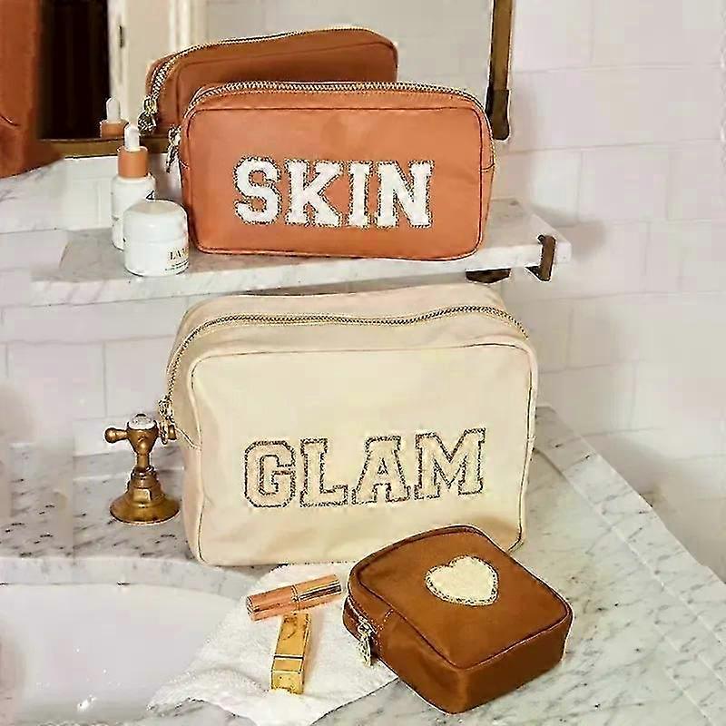 26-27 Customize Diy Letters Patch Heart Pearl Rhinestone Nylon Durable Waterproof Pouch Makeup Case Nylon Travel Cosmetic Bag
