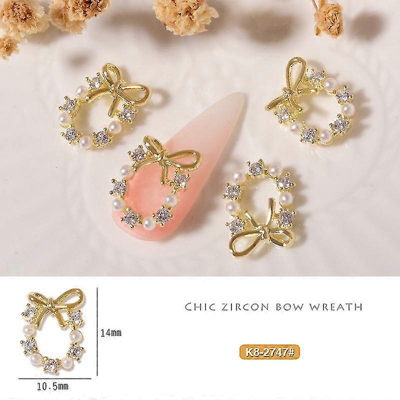 26-27 3d Rhinestone Crystal Nail Art Garland Pearl Dangle Charms Christmas Nail Decor