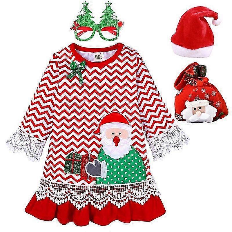 26-27 Children Cartoon Christmas Santa Claus Clothing Girl Dresses Cotton Long Sleeve Kids Costume 1-6 Years