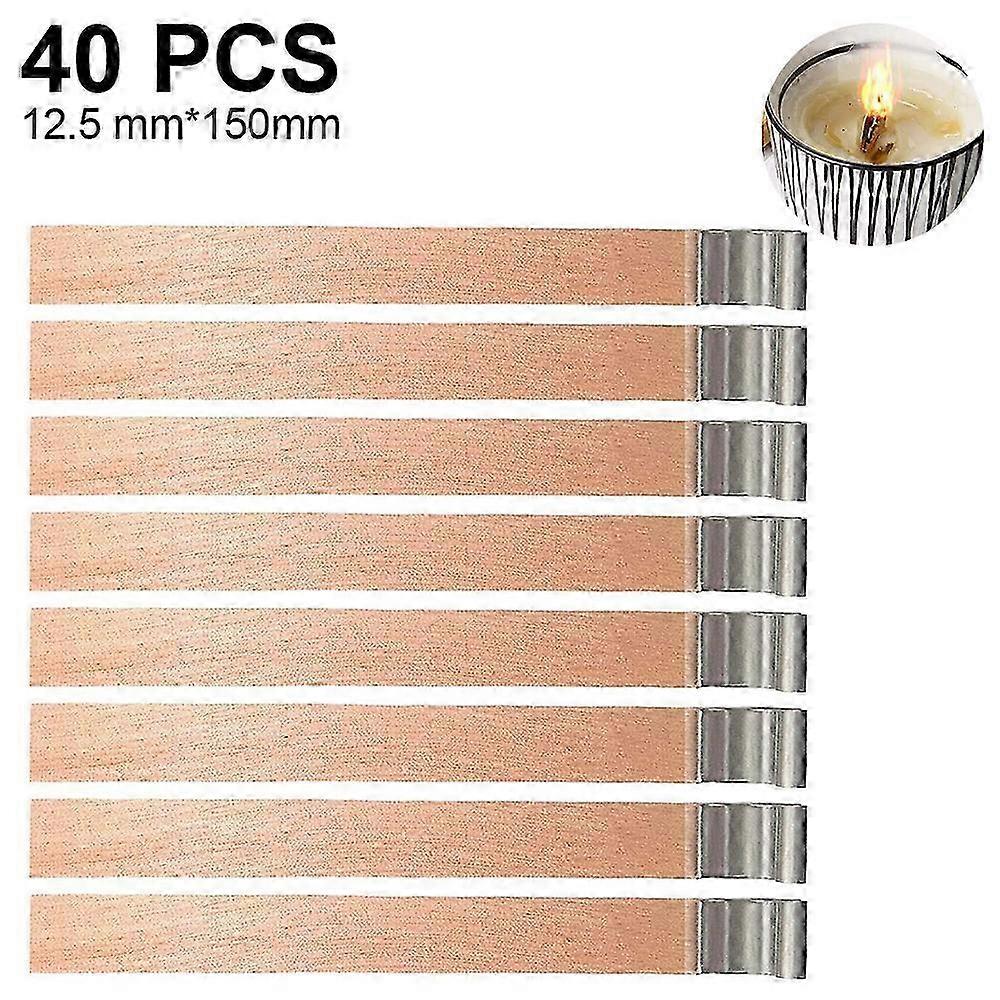 26-27 Elegant Wooden Candle Wicks, 12.5Mm*150Mm, For Diy Candle Making, Smokeless Even Burning, Healthy Material, Natural Wood, 40 Pcs