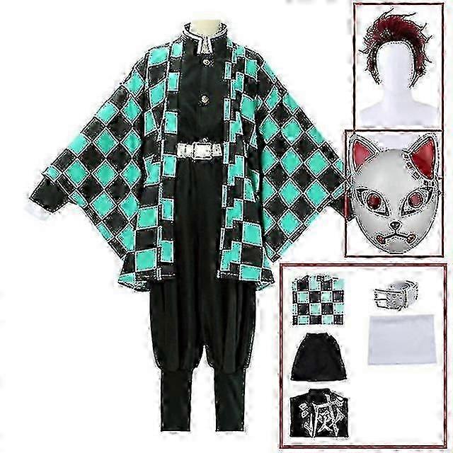 26-27 Demon Slayer Kimetsu No Yaiba Tanjirou Kamado Cosplay Costume Kimono Halloween Anime Uniform Set For Adult Kids V