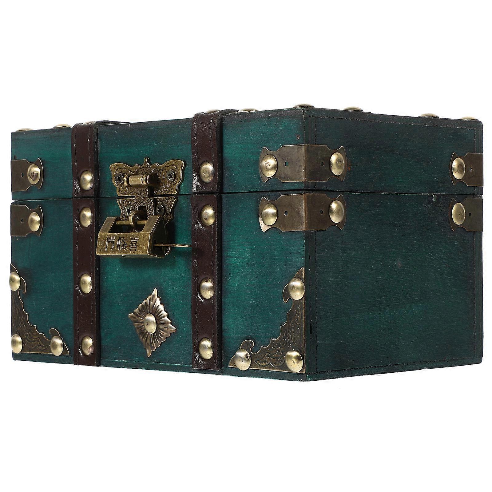 Rectangular Wood Treasure Chest Trinket Storage Box Rustic Style Ideal For Jewelry Books Great For Home Office Gift Giving Metal Lock 5Pcs