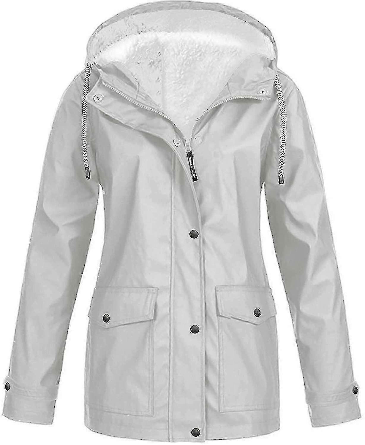 2026 Women's Lined Fleece Rain Jacket Winter Outdoor Waterproof Hooded Raincoat Ladies Snow Warm Ski Jackets Solid Color