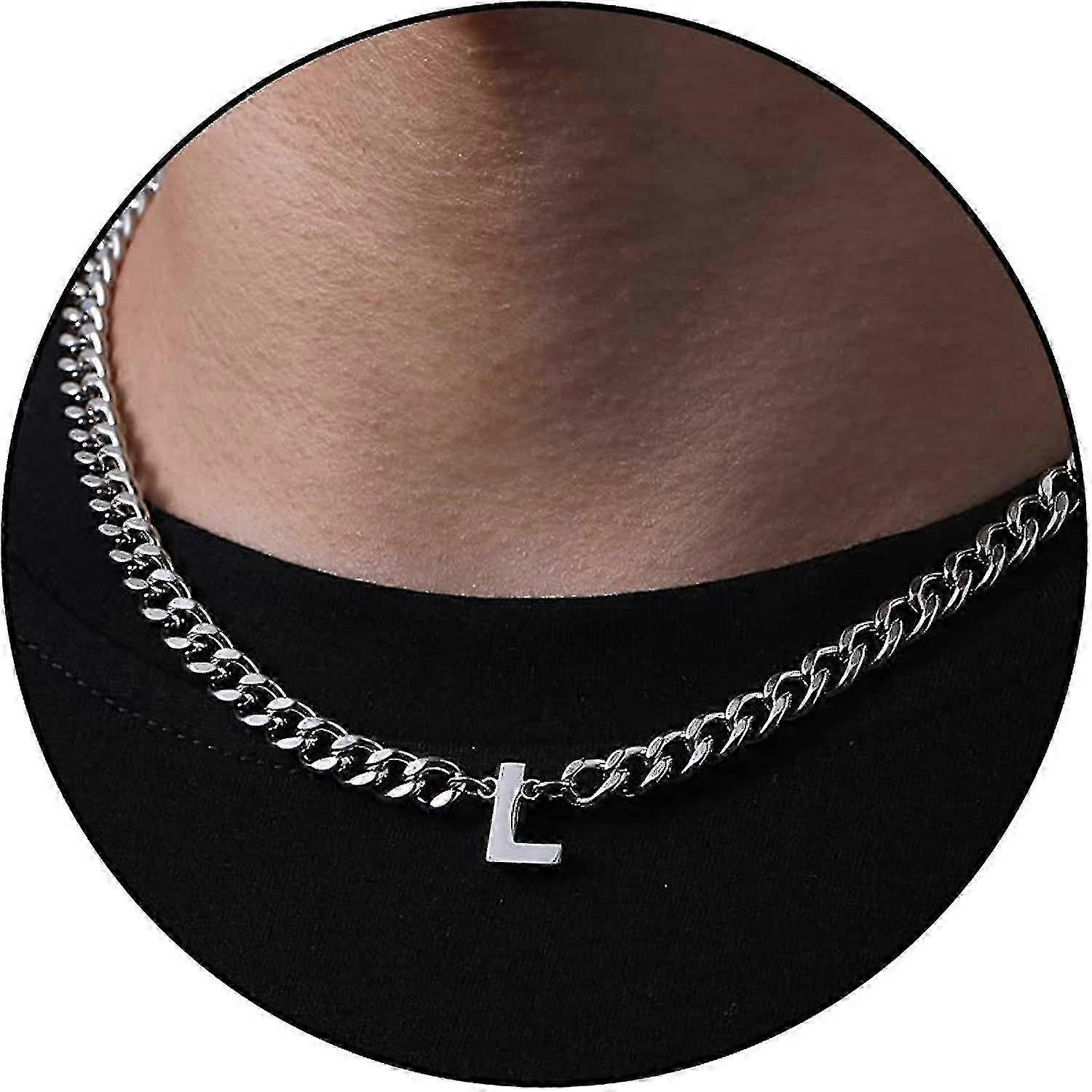2026 Initial A-z Cuban Link Chain Necklace For Boys Men Women Letter Pendant Stainless Steel 6.5mm 18+2 Inches Jewelry Gift