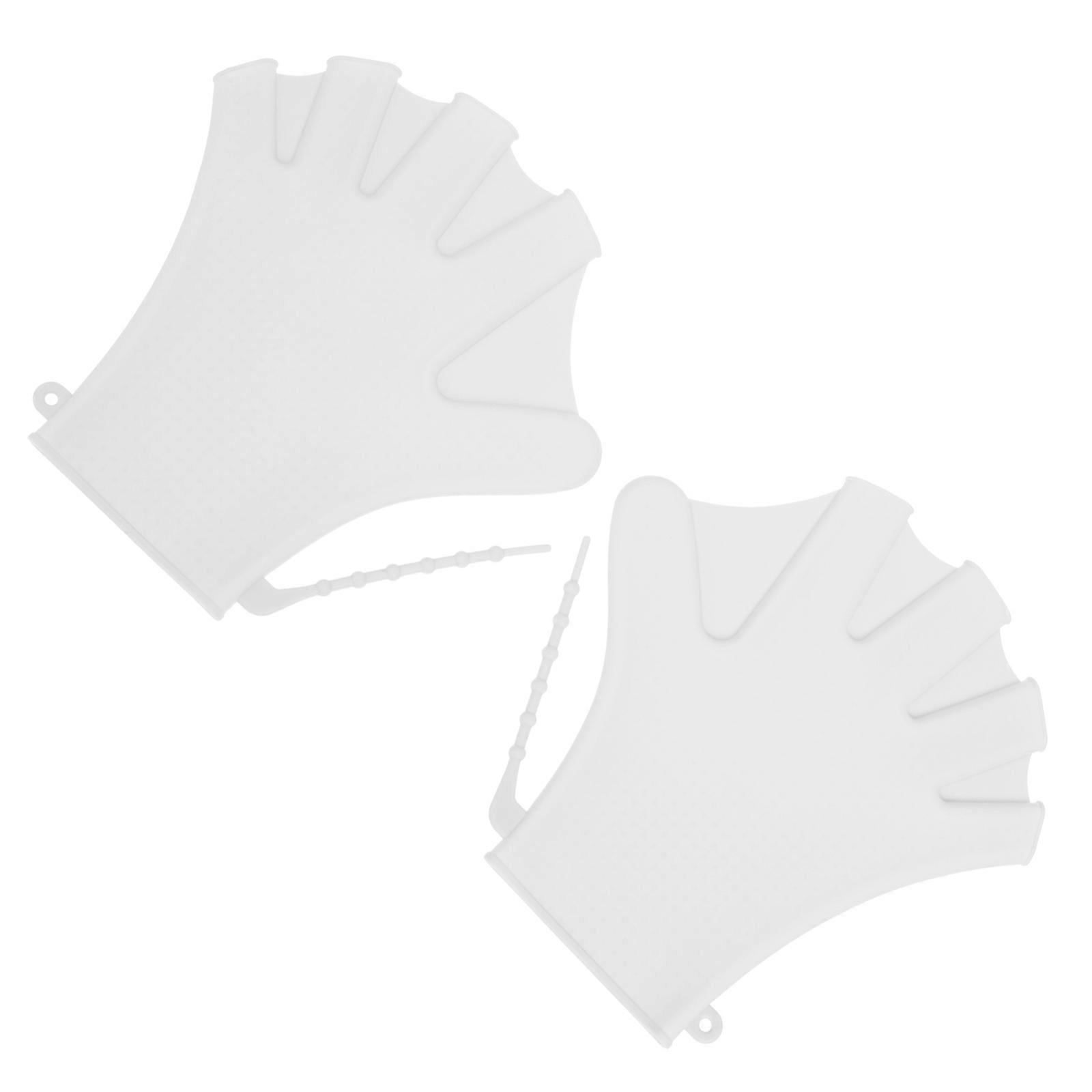 White Silicone Swimming Gloves for Water Fitness Classes and Diving Activities Adjustable Swim Paddles 1 Pair