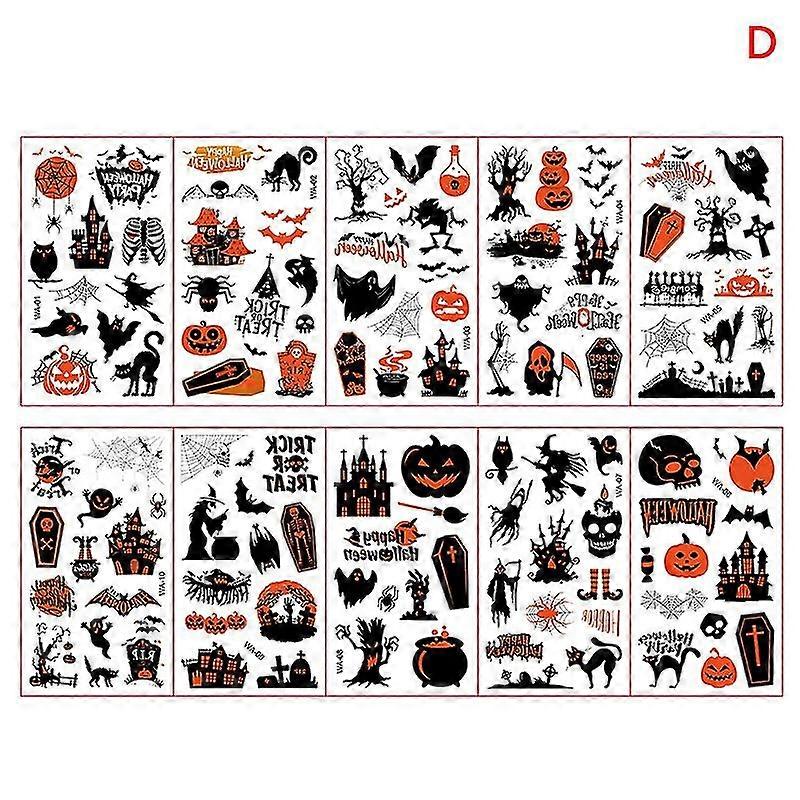 10PCS Halloween Tattoo Stickers Cartoon Pumpkin Children Arm Face Makeup Funny 26-27s