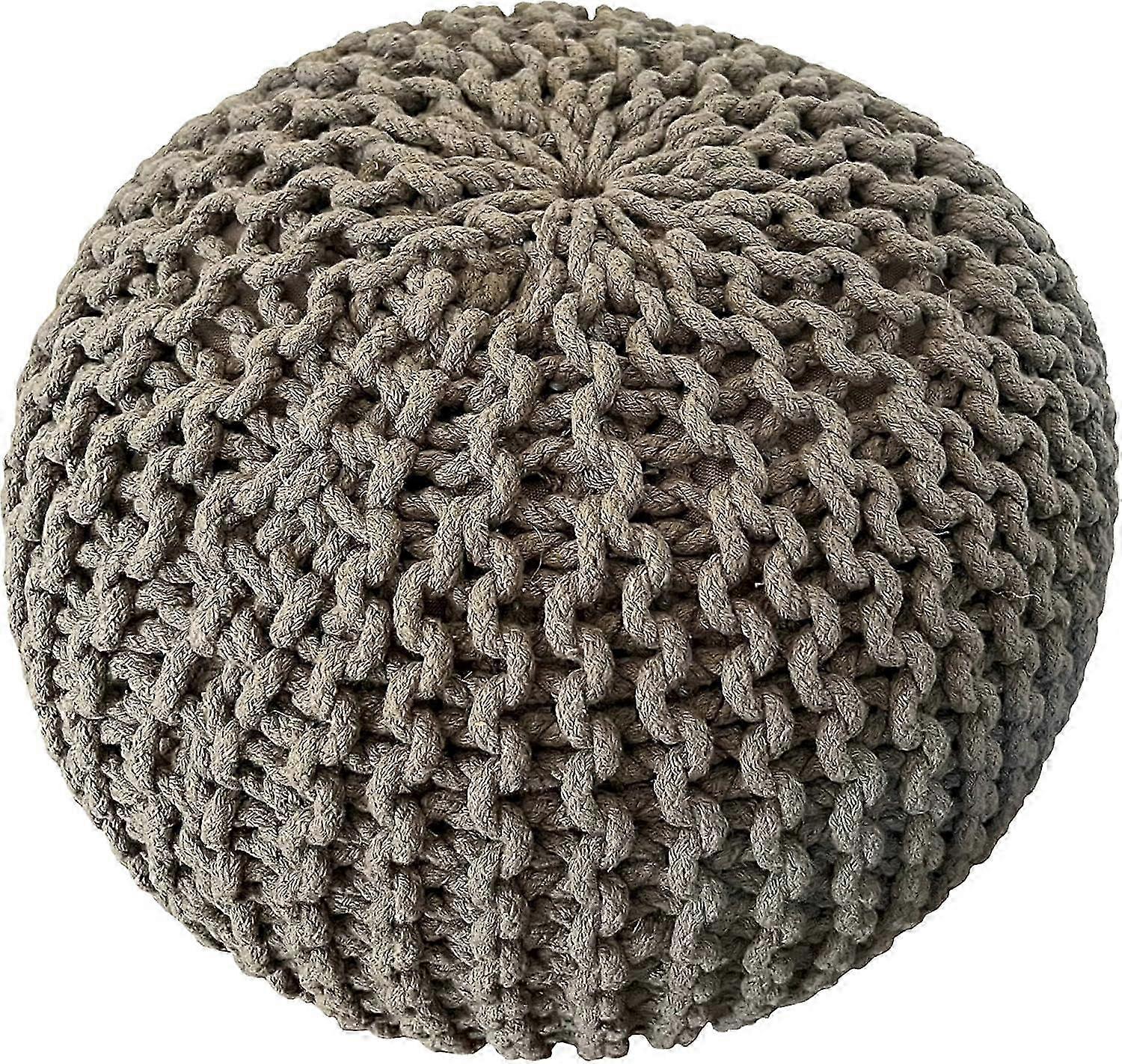 2026 1 Handmade Premium Cotton Round Knitted Cable Style Pouf Foot Stool Ottoman Bean Bag Chair for Home Furniture 17x17x14