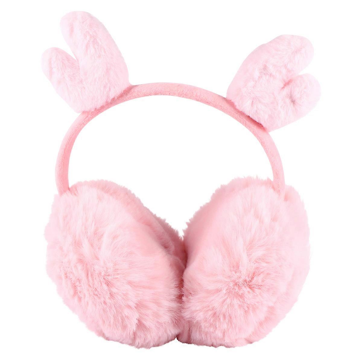 Pink Earmuffs for Women's Winter Synthetic Material for Ear Warming with Cute Cartoon Design Size 12.5 x 10.5 cm