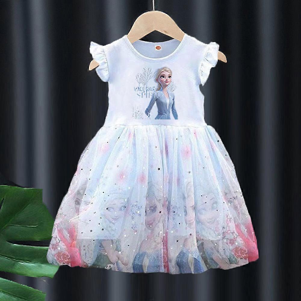 Kids 2025 New Girls Disney Summer Clothes Frozen Elsa Princess Dresses Short Sleeve Party Princess Dress Kids Daily Clothes 3-8T
