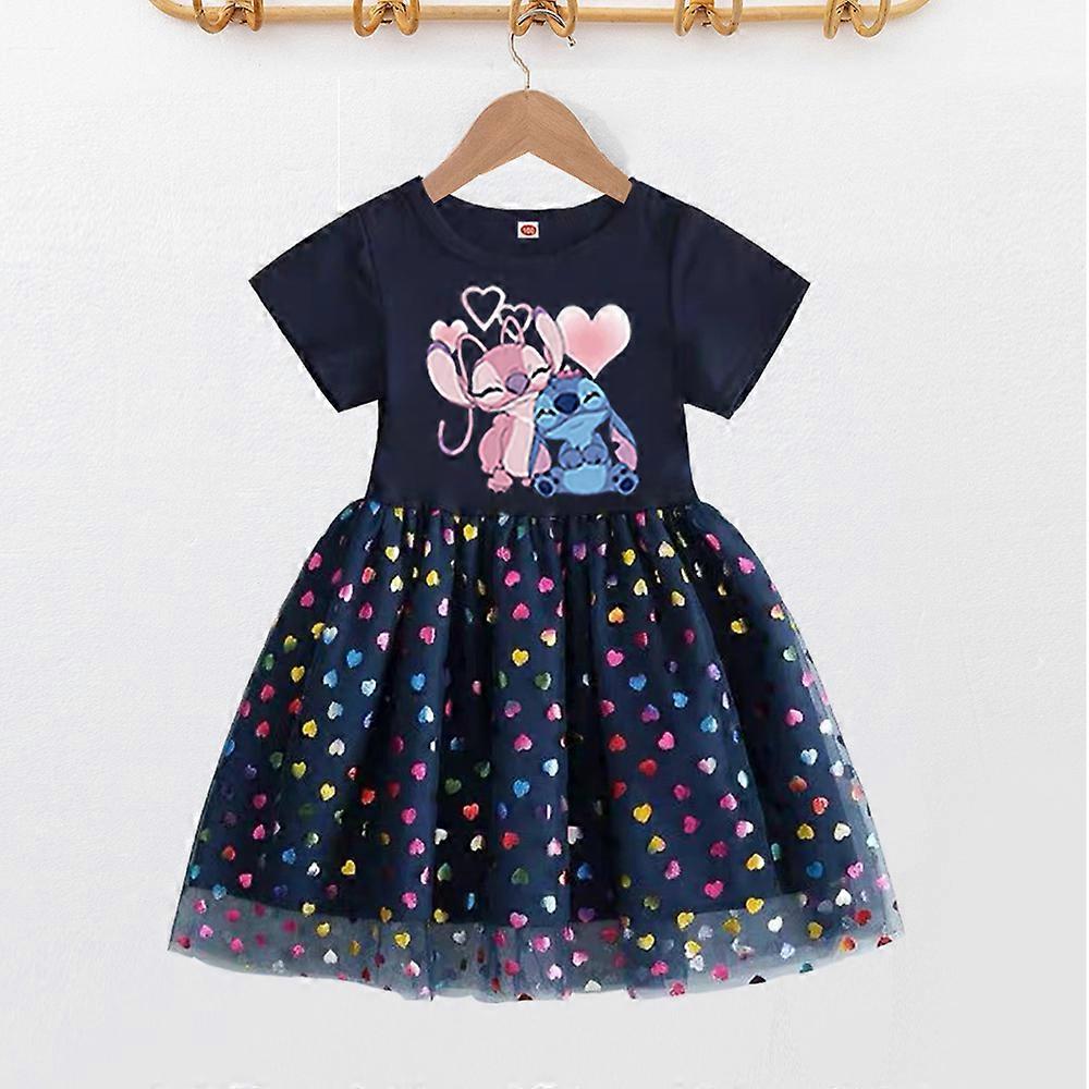 Kid Clothes Stitch Summer Short Sleeve Dress Girls Disney Tutu Princess Dress Girls Princess Dress Birthday Party Dress 2-8Y