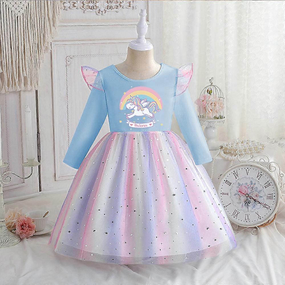 Baby Girls Dress New Unicorn Princess Dress Kids Clothes Spring Autumn Long-sleeved For Children Birthday Party Rainbow 2-8T