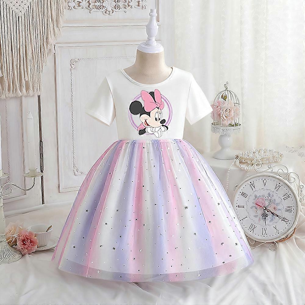 Disney Children Summer New Short sleeves Dress Baby Girls Dress For Minnie Princess Dress Kids Clothes Rainbow Birthday Party