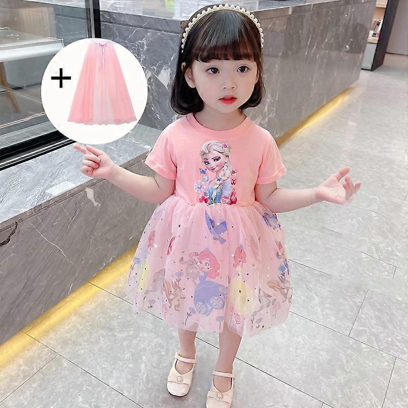 2025 New Summer Rainbow Kids Dresses for Girls Short Sleeve Disney Frozen Elsa Girls Costume Princess Dress Kids Daily Clothes