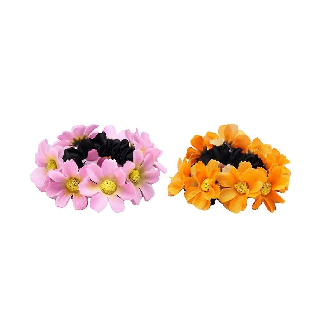 Flower Hair Ring for Decor 2Pcs Simulation Daisy Cloth Hair Ropes for Woman