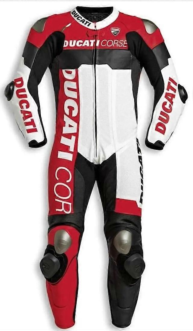 • Leather 1.2~1.3mm grain  used •Original YKK Zipper •Polyester Mesh Lining. Molded Metal Inserts.                                                                 •Removable padding •CE Approved Paddings at both  elbows, shoulders and back •Safety Pads on knees and  to protect knee caps •Removable padding at  knees •Stretch panels  at the waist •8 & Full inch zipper for connecting to  leather trousers   •Stretch panels  at the waist •Recommended for  racing bikers