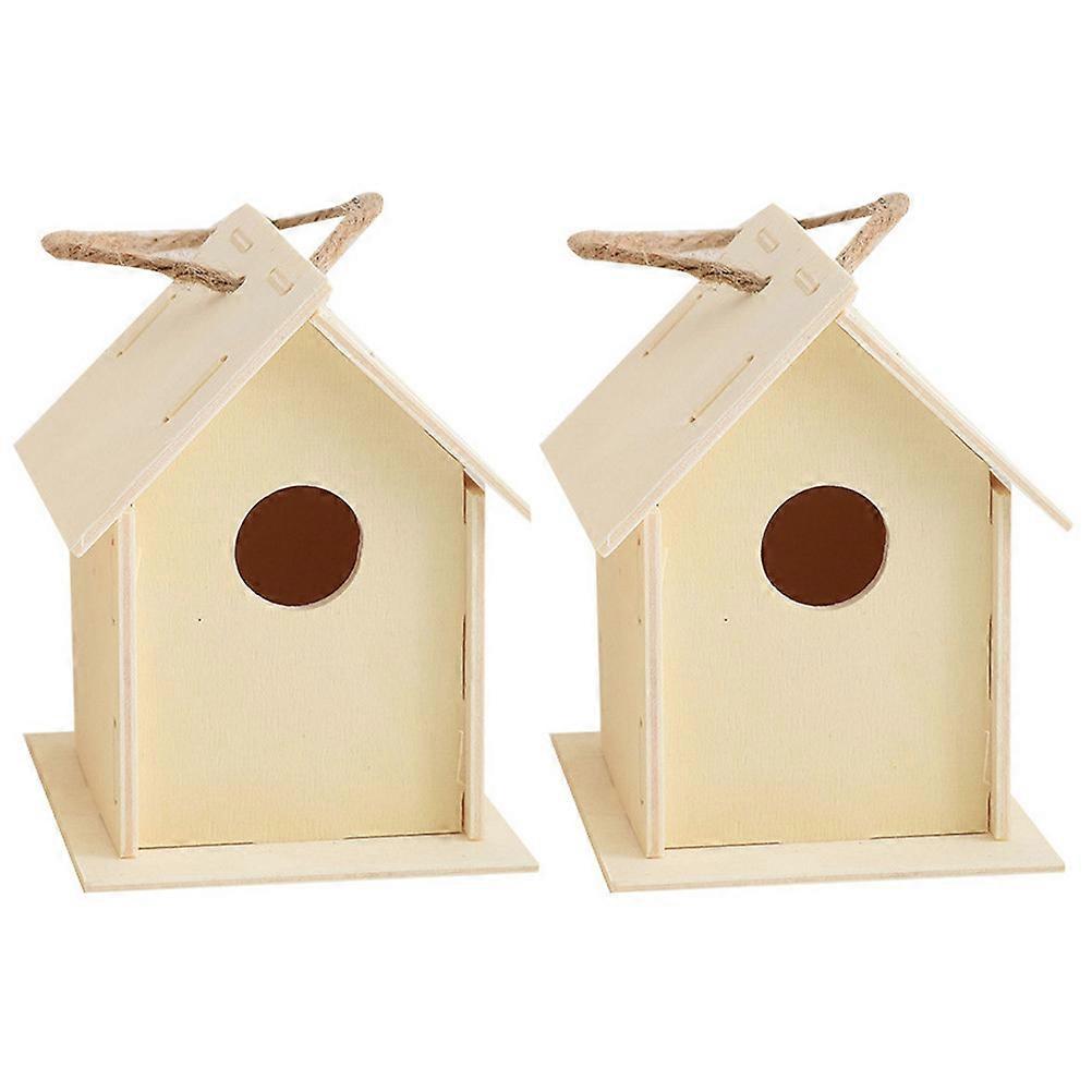 Wooden Bird Nest DIY Birdhouse for Decoration 2Pcs Creative Khaki Pendant