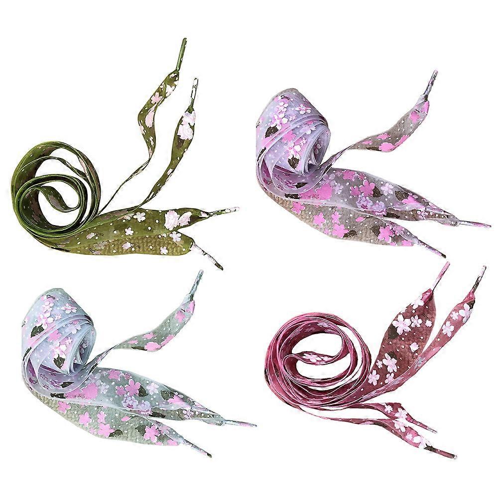 Shoelaces Transparent Yarn Flower Printed Shoelace for Shoes Use 4Pairs