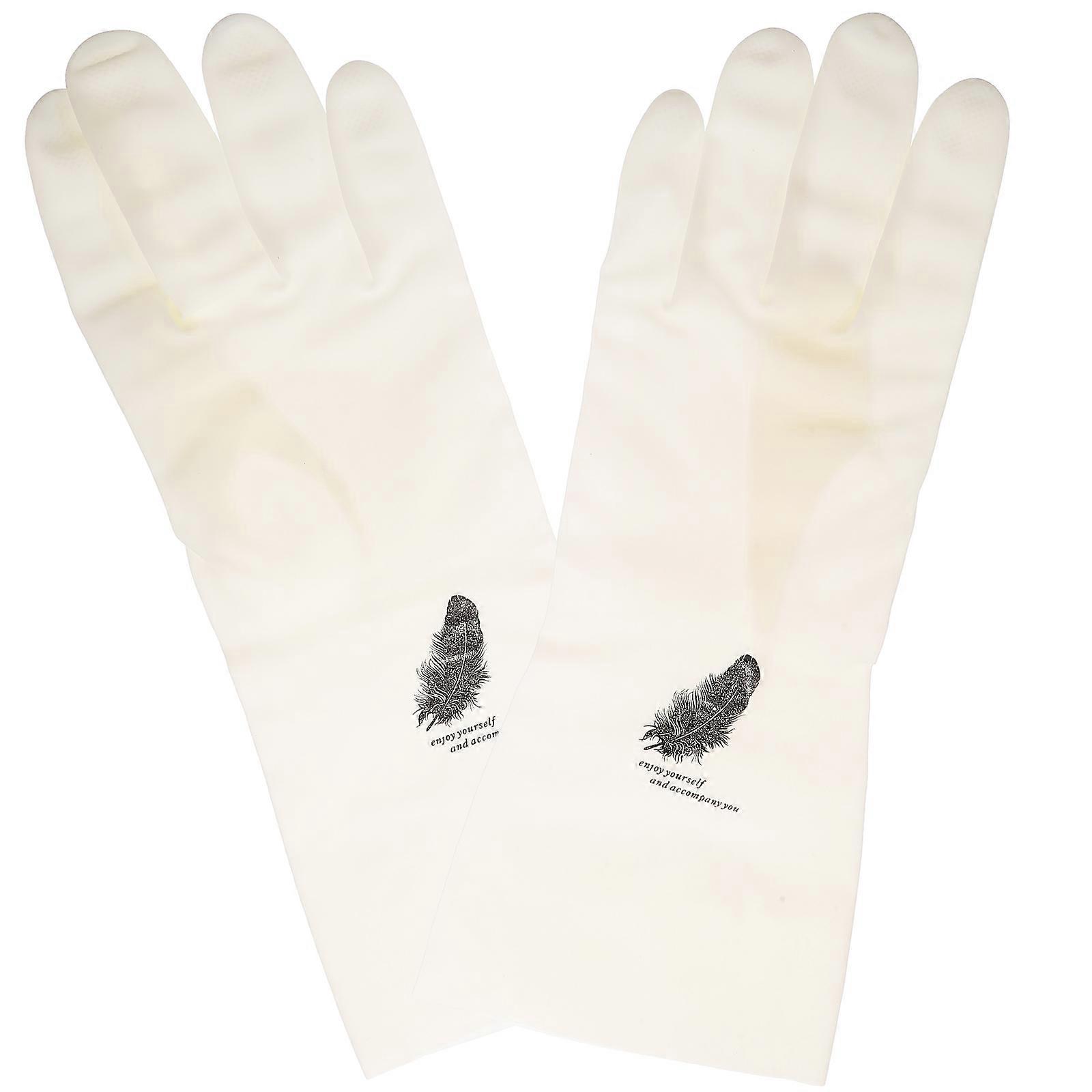 Made of material for durable and use. Protect your beautiful hands from unclean water and other unclear things. Suitable for hand wash, kitchen, dish washing, pet care, laundry cleaning, carpet household, wash car or gardening work etc. Feature - Color: White. - Material: Latex. - Size : About 8-9cm (Palm Width). - Made of latex material for durable and use. - Protect your beautiful hands from unclean water and other unclear things. - Soft, non-restrictive lining keeps hands comfortable and helps keeping - Suitable for hand wash, kitchen, dish washing, pet care, laundry cleaning, carpet household, wash car or gardening work etc. - Thin layers gloves are breathable and lightweight in wearing. Can be reused many times for a wide variety of jobs. Package list: 1 x pair of gloves