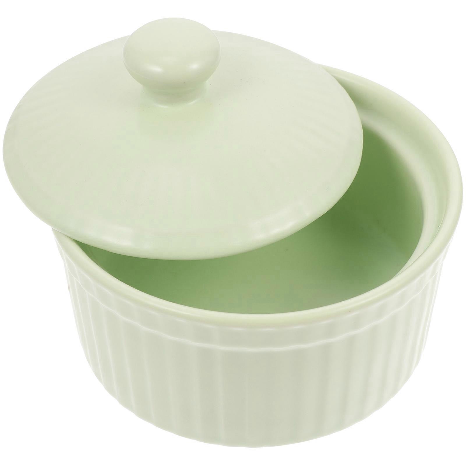 Ceramic Baking Bowl Heat Resistance Pudding Jelly Cup Dessert Small Bowl with Lid for Home Kitchen Green