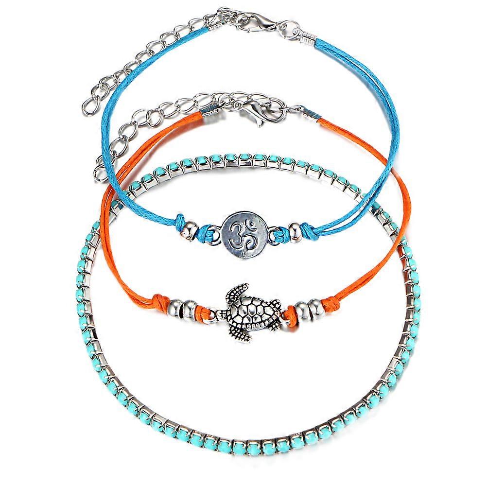 Women's Fashionable Tricolor Bracelet Set with Rune Pendant and Alloy Gem Anklet 3PCS Assorted Color