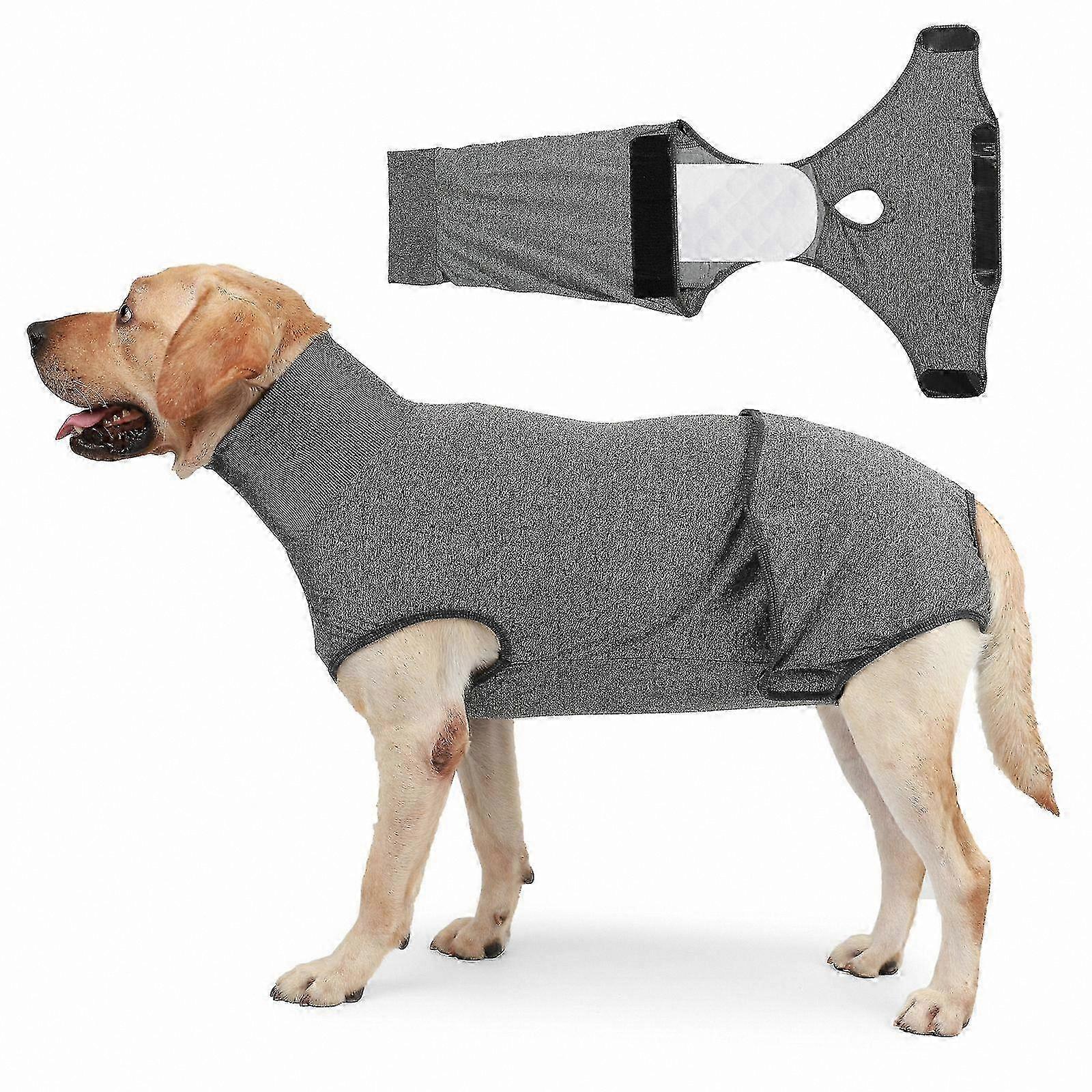 NOTE: If dog is long but slender, consider sizing down. If dog is short but stocky, consider sizing up. PREVENT FROM LICKING AND SCRATCHING - Effectively protect your pet's wounds, incisions, bandages, hot spots, and skin irritations after spaying or neutering, or during allergy flare-ups. Helps keep pets calm and stress-free, making the recovery process easier for everyone. No more cones – Our surgical recovery suit offers a comfortable alternative to traditional collars or "cone of shame" devices. Allows pets to eat, sleep, and walk around more comfortably. SOFT AND BREATHABLE MATERIAL – Made from soft cotton and polyester fabric. Breathable, stretchy, and snug without being tight. Machine washable and dries quickly. Available in sizes S, M, L, XL, and 2XL for small, medium, and large dogs and cats. FULL COVER UNISEX DESIGN – Full-body coverage with an easy-access opening for bathroom breaks without removing the suit. Adjustable closure system allows for worry-free walks. Velcro opening near the tail base enables walking your dog without taking off the garment.
