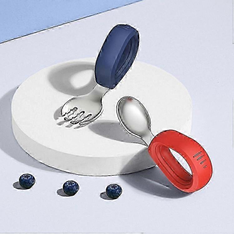 Round Handle Stainless Steel Fork and Spoon Set for Kids Portable Tableware