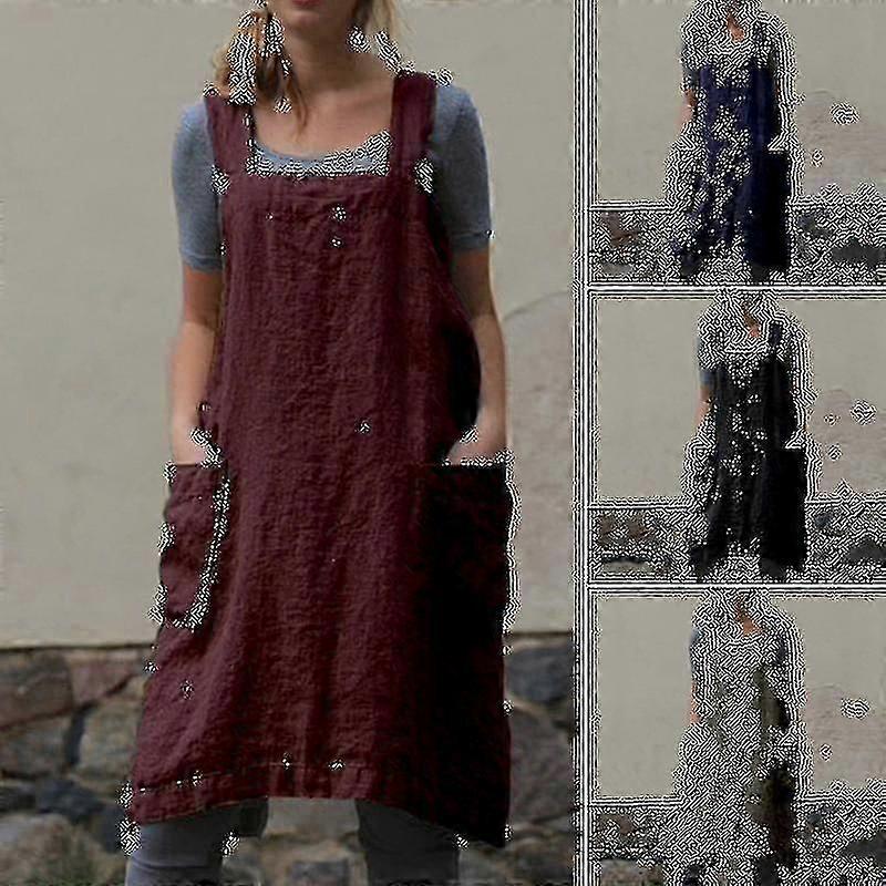 Women's Cotton Linen Crossback Apron with Pockets, Long Bib for Cooking and Gardening