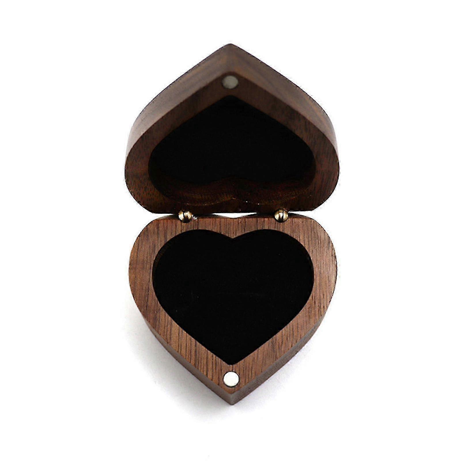 Heart-shaped Solid Wood Ring Box Velvet Soft Inner Bag Jewelry Storage Bag 26s