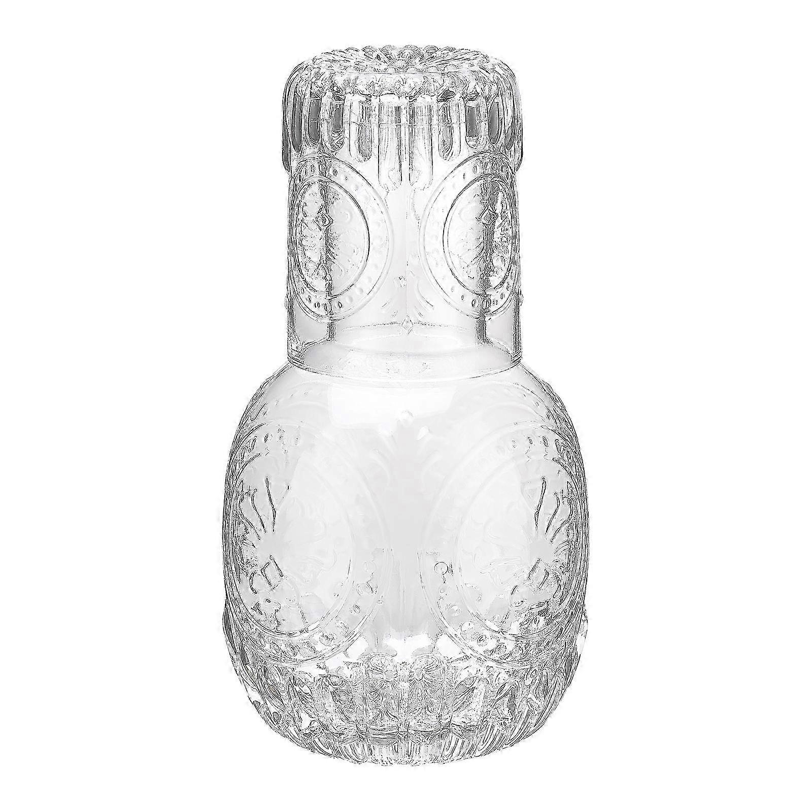 Vintage Nightstand Glass Water Bottle Set Nighttime Water Bottle with Glass Transparent Nightstand Glass Water Bottle and Mugs 26-27s