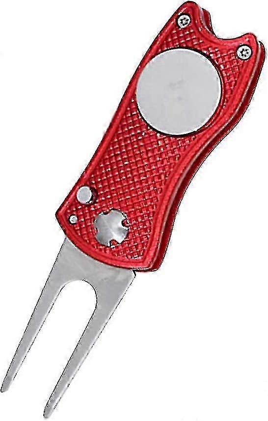 Stainless Steel Folding Golf Divot Repair Tool Set with Ball Marker & Fork - For Golfer Training (Red, 1pc) 26-27s
