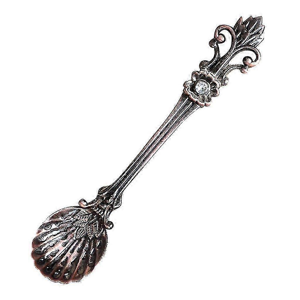 Vintage Royal Style Coffee Spoon, Antique Bronze Shell Dessert Stirrer with Crystal Flower, Elegant Afternoon Tea Cutlery Gift for Home & Cafe Decor