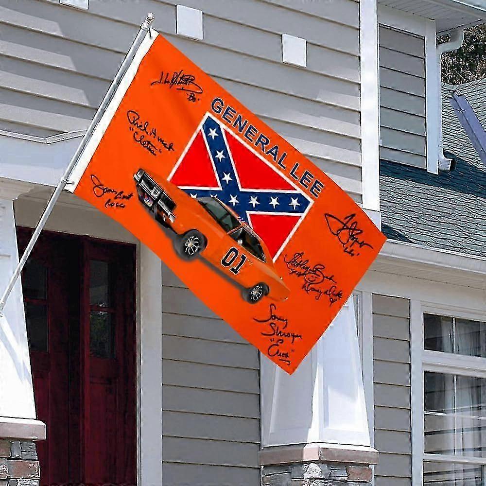 Autographed Checkered Racing Flag General Lee 01 Flag Banner For Car Fans (car) Rq 0330