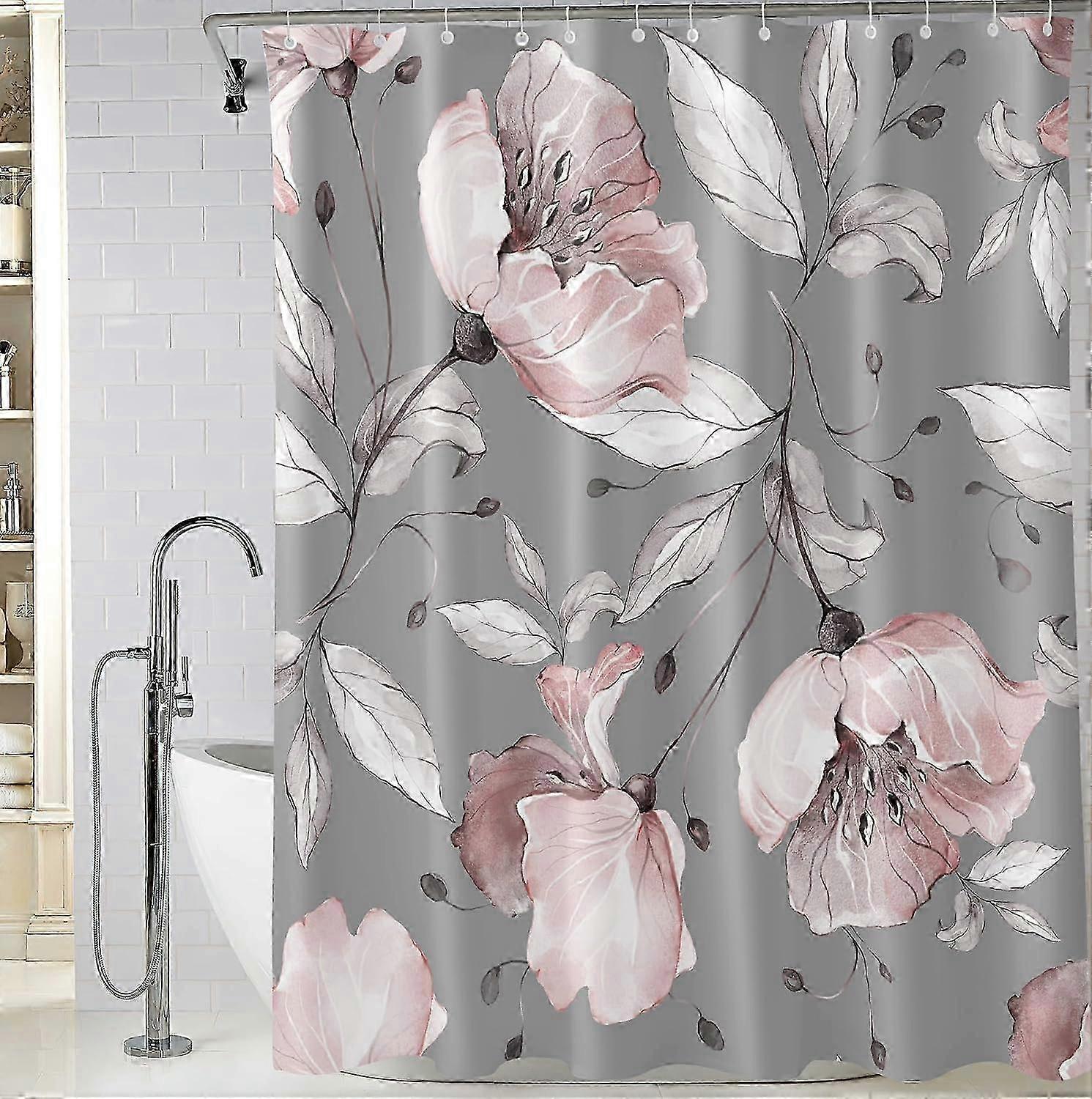 Pink Flower Shower Curtainfloral Botanical Shower Curtain For Bathroom Decor, Wildflower Herb Shower Curtain With 12 Hooks Shower Curtain-1462