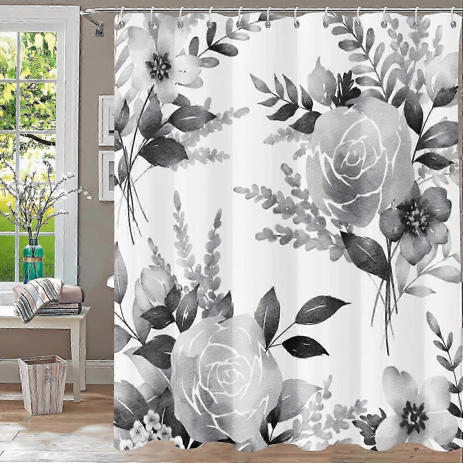 Shower Curtain,gray Floral Shower Curtains For Bathroom,watercolor Ink Flowers Plant Leaf Shower Curtain Sets,waterproof Fabric Cloth Grey Shower Curt