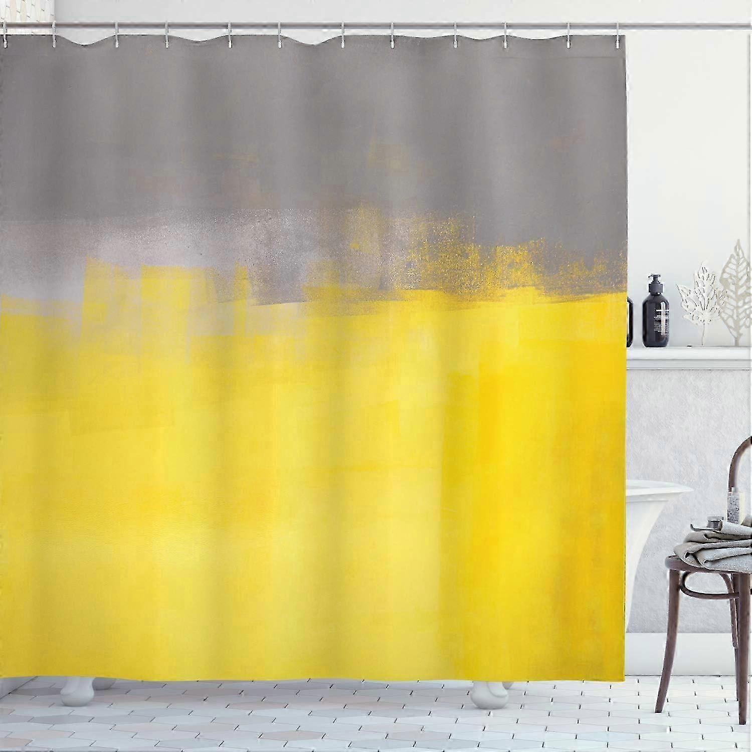 Grey And Yellow Shower Curtain Grunge Street Art Painting Brush Print Ombre Design Fabric Home Accessories For Simple And Modern Bathroom Decor Set Wi