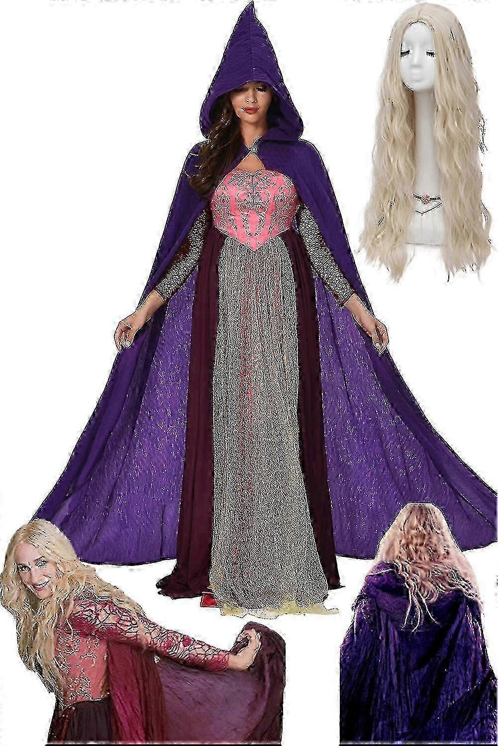 Sarah Sanderson Cosplay Costume Hocus Halloween Pocus Women Dresses Cloak Wig Halloween Party Witch Clothes For Ladies Role Play 25-26s