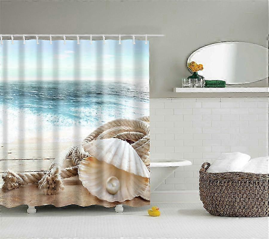 Windmill Seaside Scenery Shell Beach Scenic Bathroom Shower Curtain Frabic Waterproof Polyester Bathroom Curtain With Hooks Shower Curtain-1756 /2025