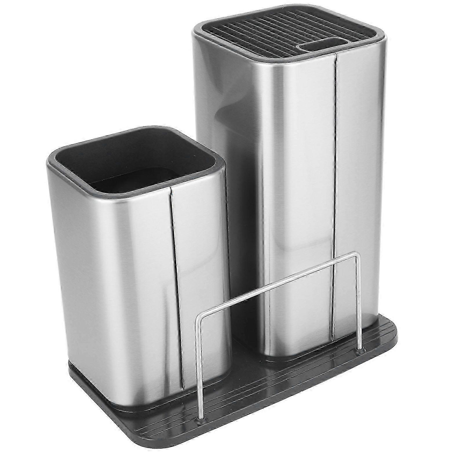 2 in 1 Stainless Steel Knife Stand & Kitchenware Holder 23.6x11.2cm 25-26s
