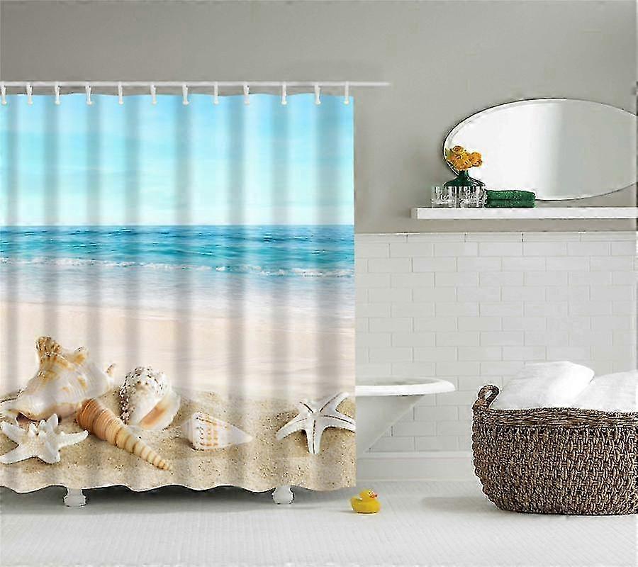 Windmill Seaside Scenery Shell Beach Scenic Bathroom Shower Curtain Frabic Waterproof Polyester Bathroom Curtain With Hooks Shower Curtain-1766 /2025