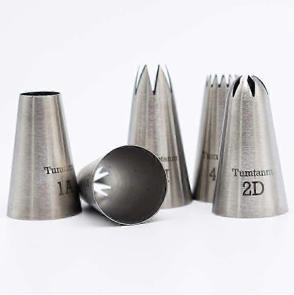 Set of 5 large professional stainless steel nozzles for icing and cupcakes 25-26s