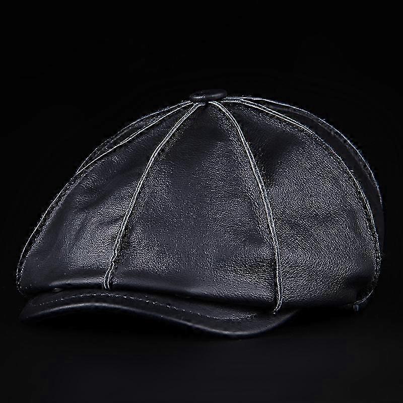 Men's Genuine Cowhide Leather Warm Octagonal Cap Casual Vintage Newsboy Cap 25-26s