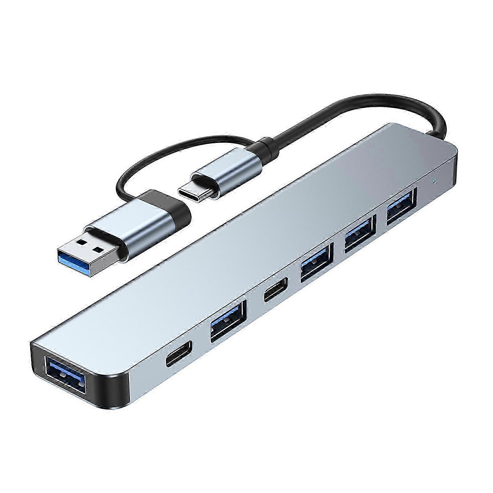 Description: You will find that compared with the single USB-C port, dual USB-C adapter fits more tightly than single Type-C ports and is more stable and non-loose. Due to compact shape, it is easy to carry. There are seven ports in this data hub that are 4 USB2.0, a USB-C2.0, USB3.0 and PD 60W ports and can be used simultaneously, which is suitable for USB C laptops, phones, tablets and other devices. It is constructed of aluminum alloy material. The length of this product is 9.5cm, the width is 3cm and the height is 1.1cm. It is ideal to use at home, on working place or during travelling. Item Name: Docking Station Material: Aluminum Alloy Features: Plug And Play, High Speed, Stable Output Size Details: L: 9.5cm/3.74", W: 3cm/1.18", H: 1.1cm/0.43" (Approx.) Notes: Due to the light and screen setting difference, the item's color may be slightly different from the pictures. Please allow slight dimension difference due to different manual measurement. Package Includes: 1 x Docking Station Note: Due to the light and screen setting difference, the item's color may be slightly different from the pictures. Please allow slight dimension difference due to different manual measurement.