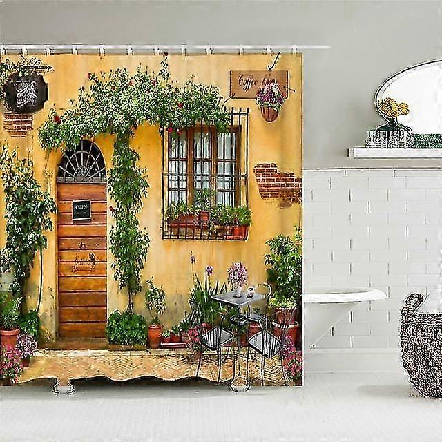 Home Wall Decor Shower Curtain 3d European Building Garden Flowers Patio Landscape Waterproof Polyester Bedroom Bathroom Curtain Shower Curtain-806 /2