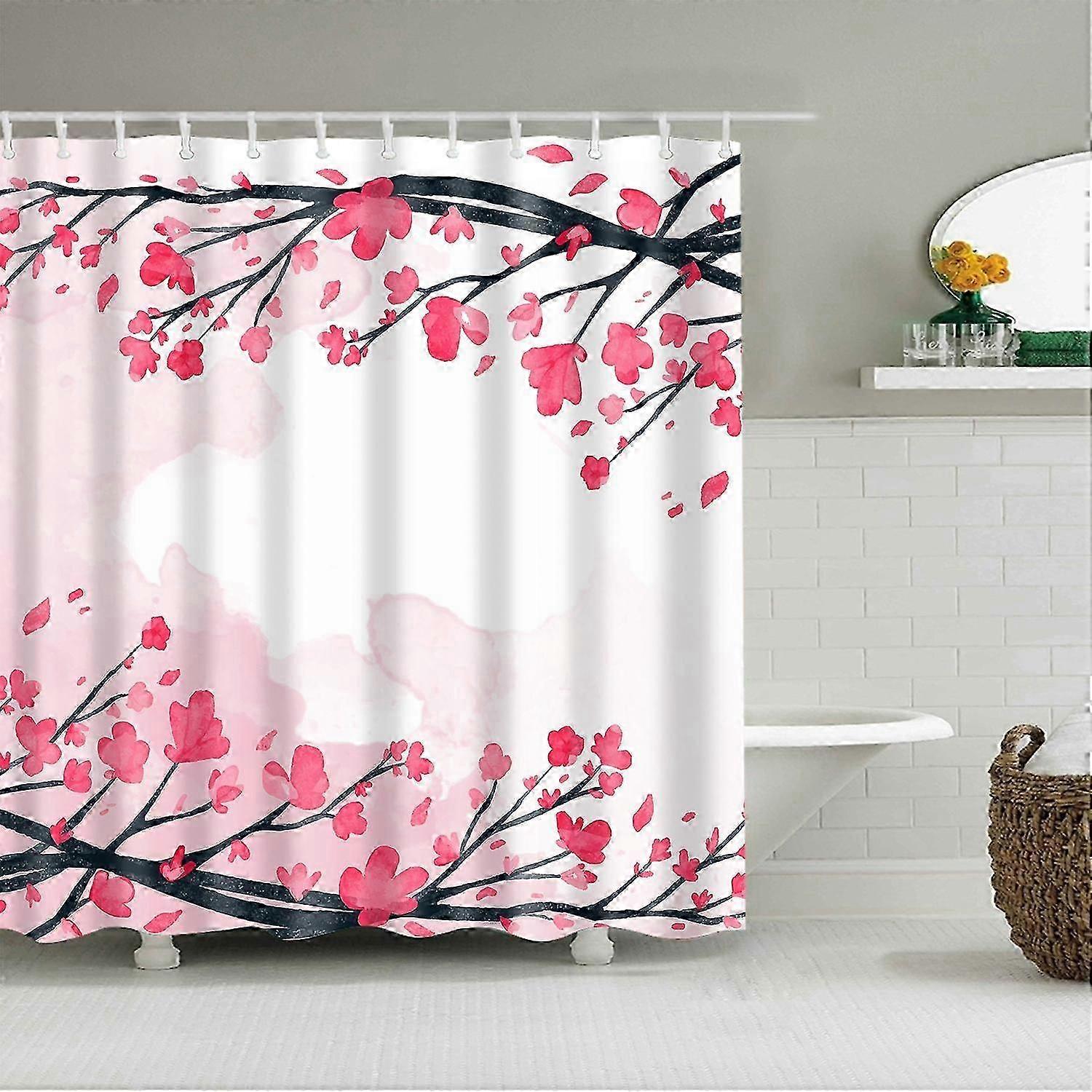 Japanese Style Cherry Blossoms Red Rose Shower Curtains Bathroom Curtain Frabic Waterproof Polyester Bathroom Curtain With Hooks Shower Curtain-747 /2