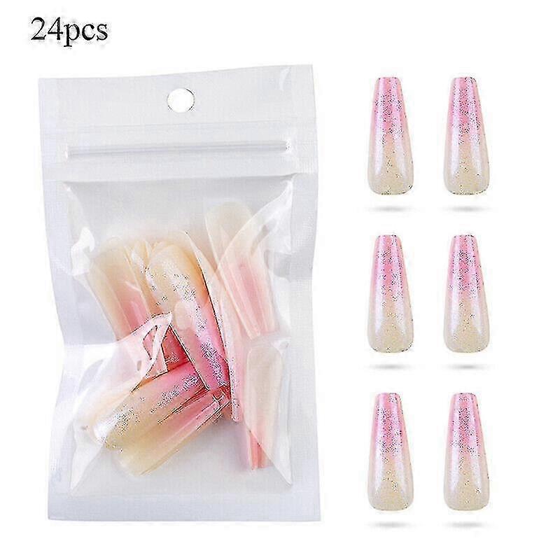 24pcs Coffin False Nails Full Cover French Ballerina Fake Nails Press On Nails 25-26s