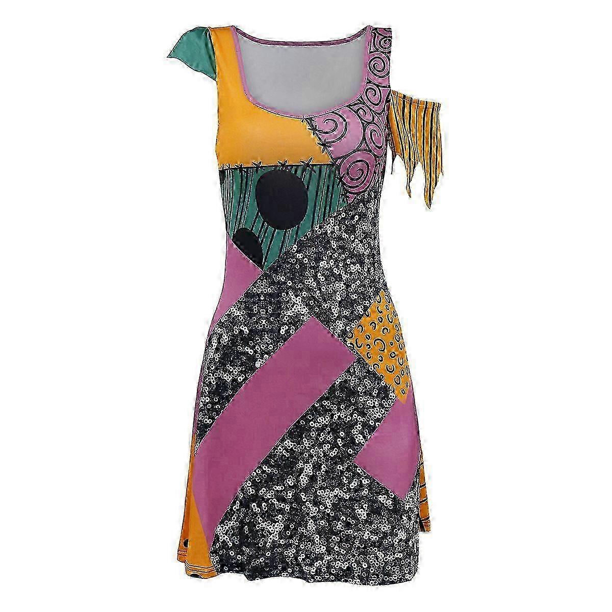 Womens Costume Nightmare Sally Inspired Dress Colorful Patchwork Halloween Cosplay Outfit 25-26s