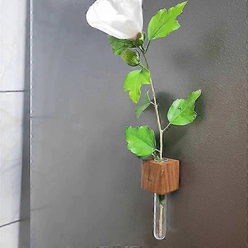 Wooden Test Tube Vase DIY Flower Arrangement Magnetic Simulation Flower Vase Refrigerator Sticker Home Kitchen Decoration Vase 25-26s