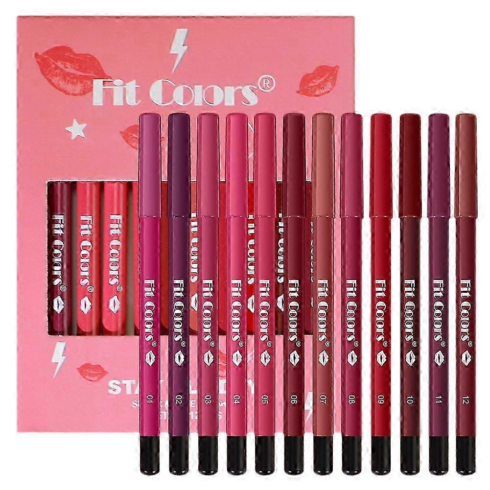 12 Piece Matte Lip Liner Set Waterproof Long-Lasting Pencil For Precise Definition And All-Day Wear 25-26s